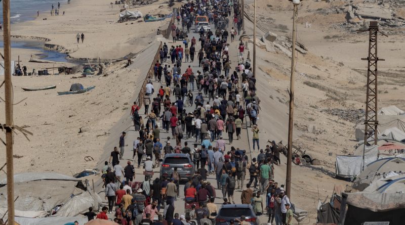 The Israeli military’s announcement of a pause in fighting brought a mass movement of people heading home to Gaza City and its surroundings.
